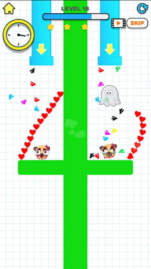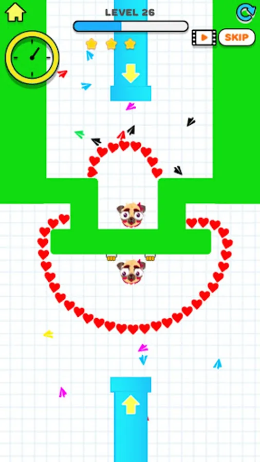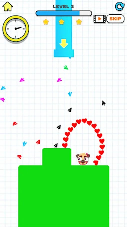 your puppy is in danger !! Could you draw hearts surrounding him to protect your dog from paper darts?