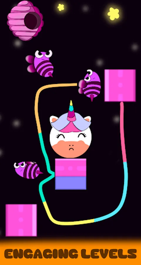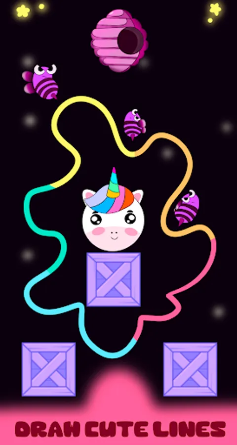 You draw one glitter and glow line with your fingers to create walls that protect the rainbow magical unicorn from attacks by bees in the hive. You need to draw to save the unicorn with the rainbow wall for 10 seconds during the attack of the bees, hold on and you will win the game. Use your brain to save the unicorn, before the bees in the hive to attack.