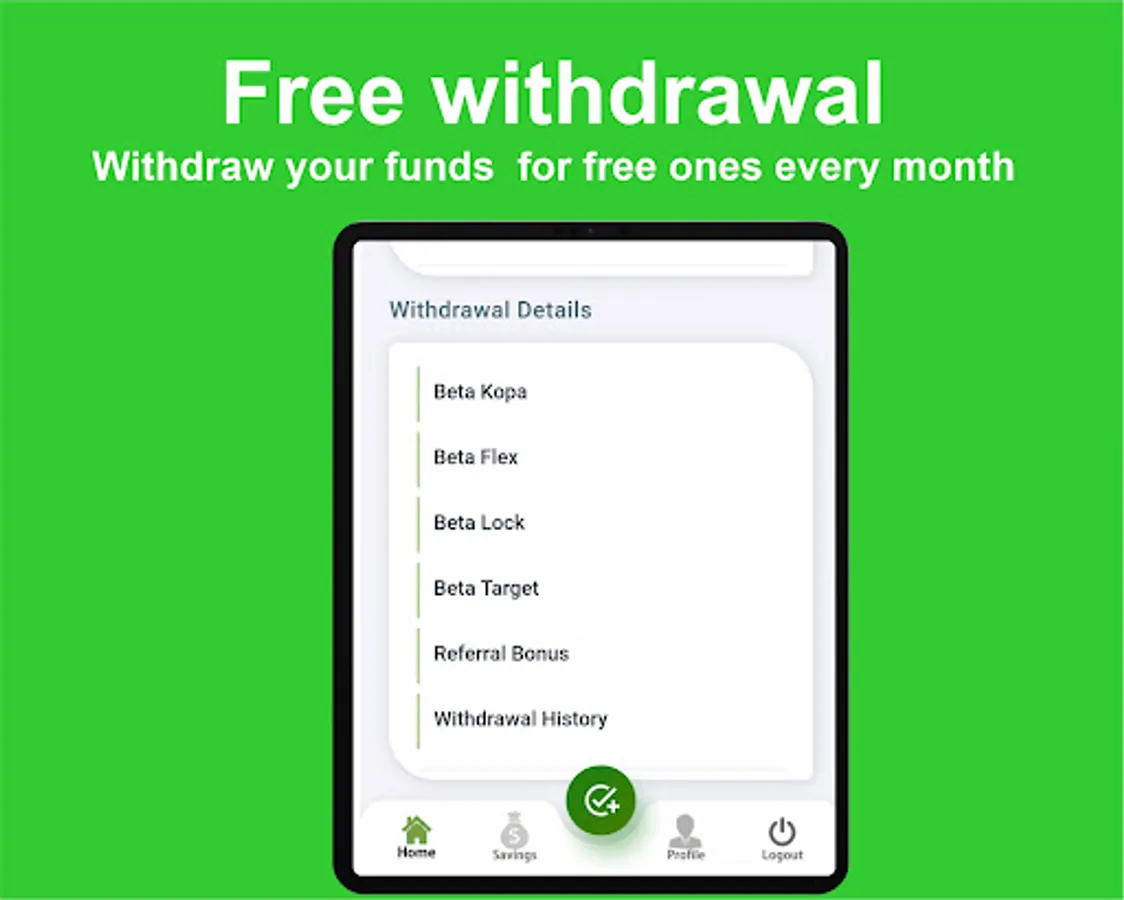 No stress. You can save, withdraw, organize and manage your money with the SaveBeta App.