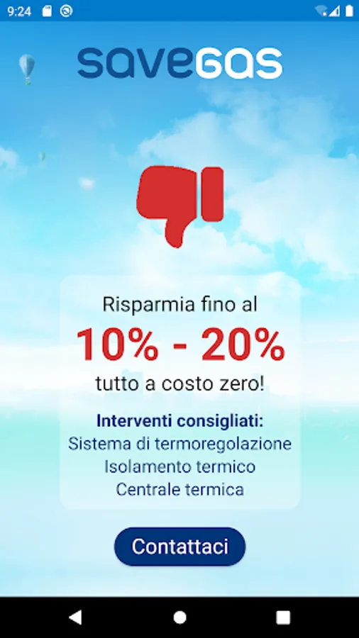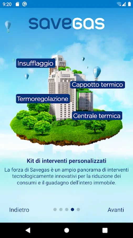 Savegas is the Seaside App, one of the ESCo of the Italgas Group, able to measure the energy efficiency level of the property, to identify the most performing redevelopment interventions to obtain at least two higher energy classes and, finally, to estimate the percentage of savings that can be obtained.