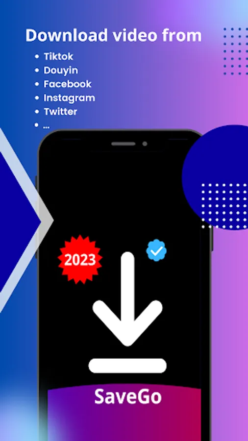 Easily download videos from Tiktok and other social media platforms like Douyin, Facebook, Instagram, Twitter... to your device with the SaveGo Video Downloader App. All formats are supported 100% for free!