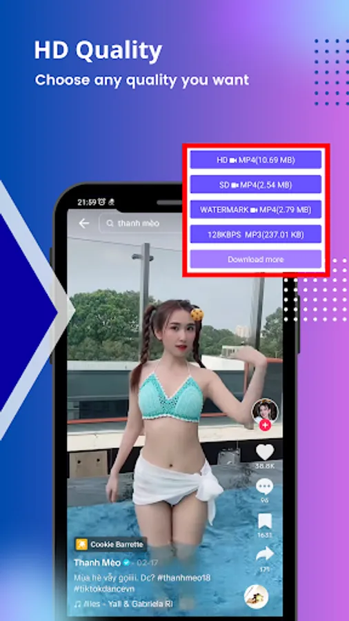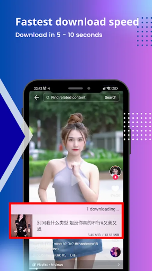 You can download videos from Tiktok, Instagram, Facebook, Douyin, Twitter... on the same app, without managing multiple apps and saving device storage.