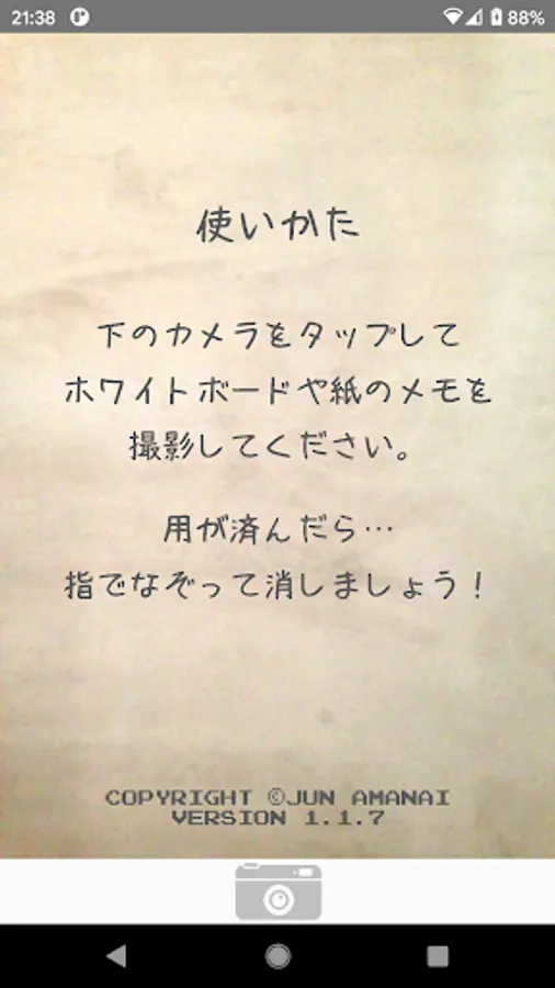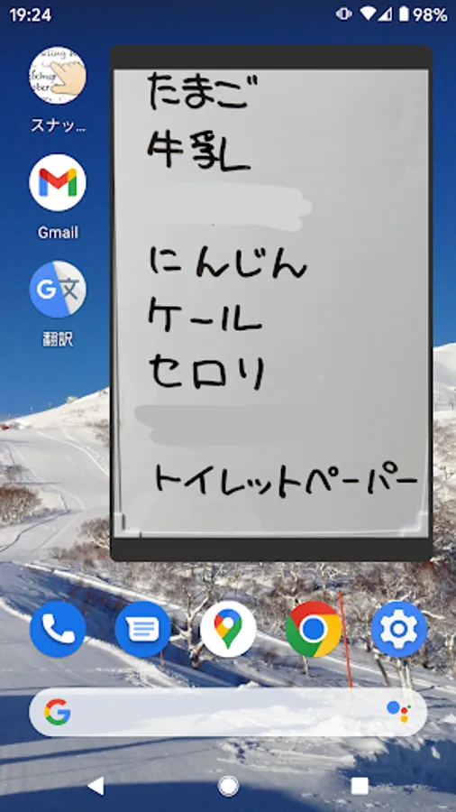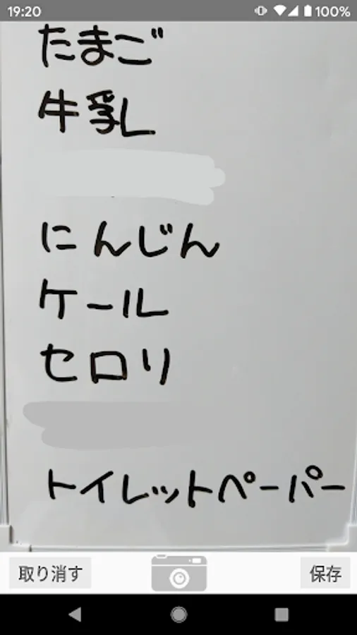 So this is the app. Take a picture of the memo you wrote on the whiteboard or paper, and then trace the line of the errand you have done with your finger to erase it! Ah, it's convenient!