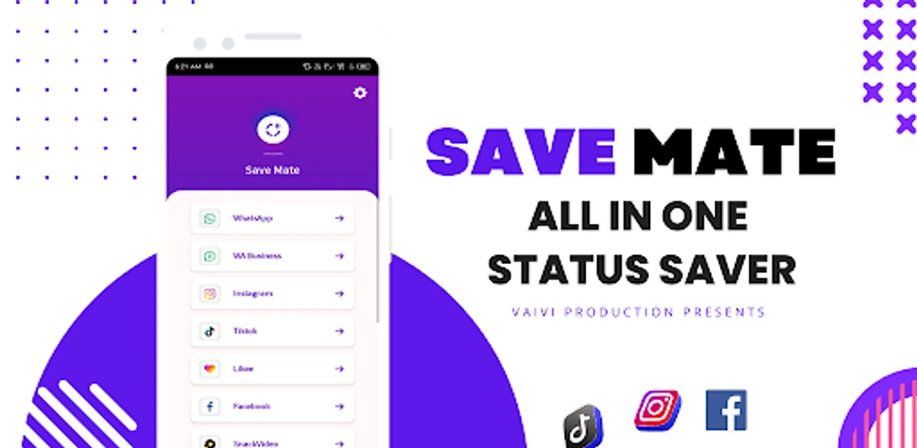 You can Save Facebook, Insta, Whatsapp Stories and TikTok, MxTakaTak, Moj, Josh, Chingari, Mitron, Sharechat, SnackVideo, Roposo, Likee, Whatsapp, WA Business, Twitter, and Instagram Videos and Images, Reel with Save Mate without watermark