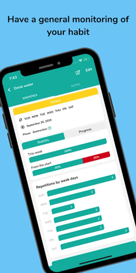 Habitude allows you to create task reminder notes about any of your daily habits: how was your day, what motivated or discouraged you, what you achieved ... you can always view the notes for each habit, this makes monitoring the habit much more easy. Simply set task reminder notifications and get set to comply with your goal tracker performance.