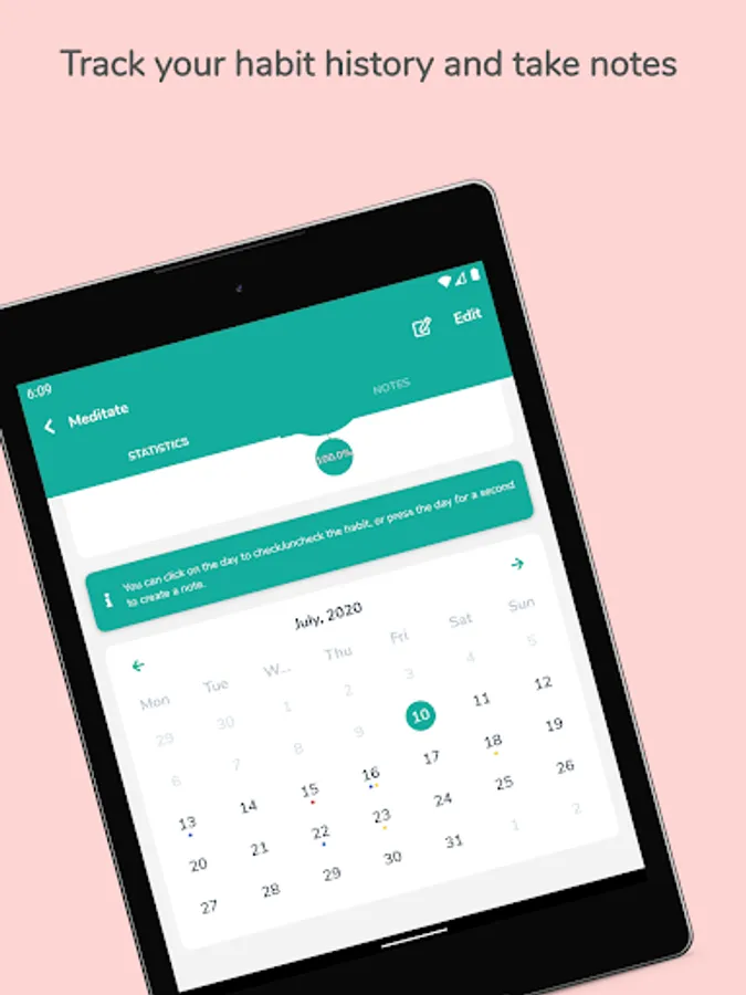 • Appealing and clutter free habit journal app layout and smooth controls