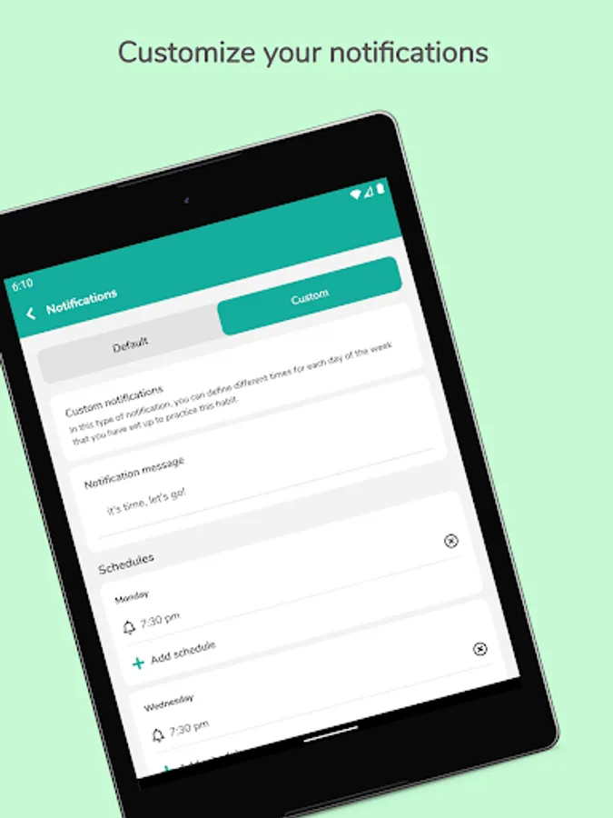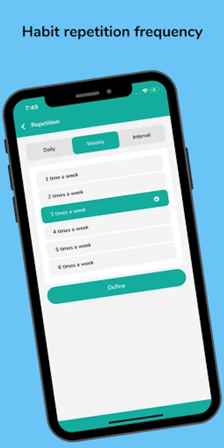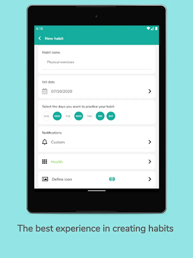 • Set days to follow the new habits and log your progress in the goal tracker