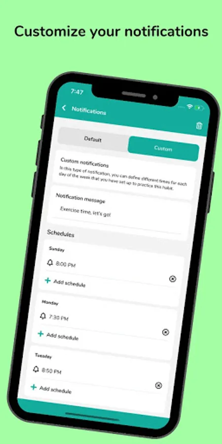 Never miss your Habit maker activity! Reminders are essential to remember to perform an activity, Habitude goal tracker will always notify you when a habit should be practiced according to habit planner. In addition, Habitude allows you to establish a custom text for task reminder notifications for each habit. You will always be notified at the time you planned to practice a particular goal planner activity.
