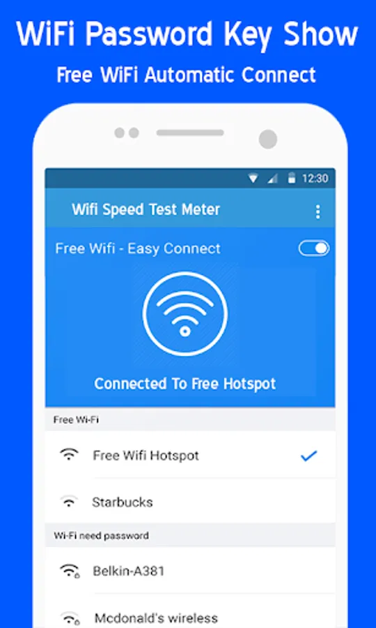 WiFi password master key show - WiFi Auto Connect and wifi analyzer helps you to quickly enable/disable your wifi directly from the app. Also, you can conveniently keep a check on connected wifi, data usage, signal strength ,IP address and speed of connected WiFi!