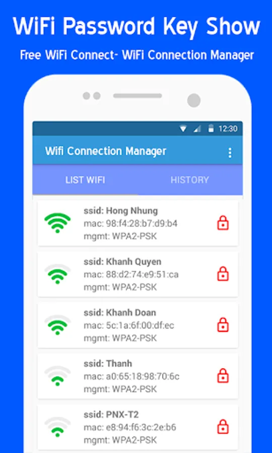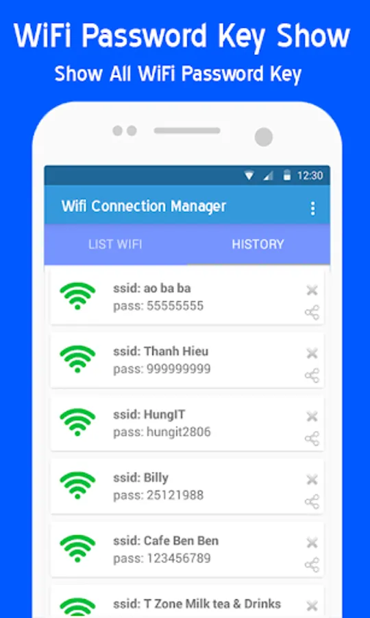 WiFi Password Master key Show recover and show WiFi password , connect wifi automatic and manage all WiFi networks. It is a perfect WiFi password app for your phone! WiFi connection Manager is a WiFi tool for you to analyze your networks and help you to connect to the best available signals! If you are looking for the best wifi device manager, optimizer & analyzer then this network tool must be your first choice!