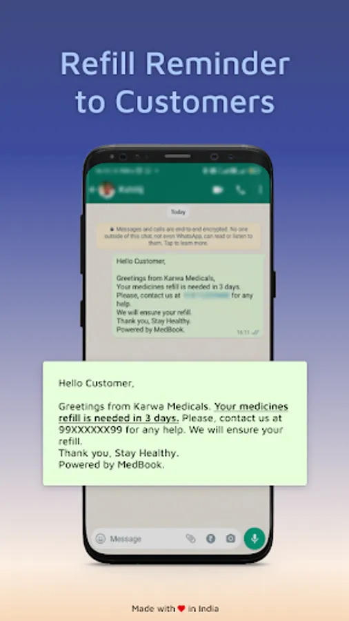 MEDBOOK is a FREE, SECURE, CUSTOMER MANAGEMENT APP FOR PHARMACIES and proudly MADE IN INDIA. Medical stores across India can now use the MEDBOOK App to manage their customers (Chronic, regular, floating and credit) and customer’s order through auto SMS, whatsapp reminder and call. MEDBOOK can help a pharmacy to manage and enhance relations with its customers and increase customer satisfaction.