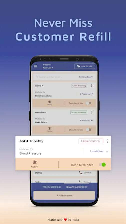 With reminder feature you can ensure customer is coming to collect the medicine otherwise these products may lead to expiry losses
