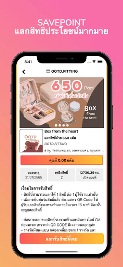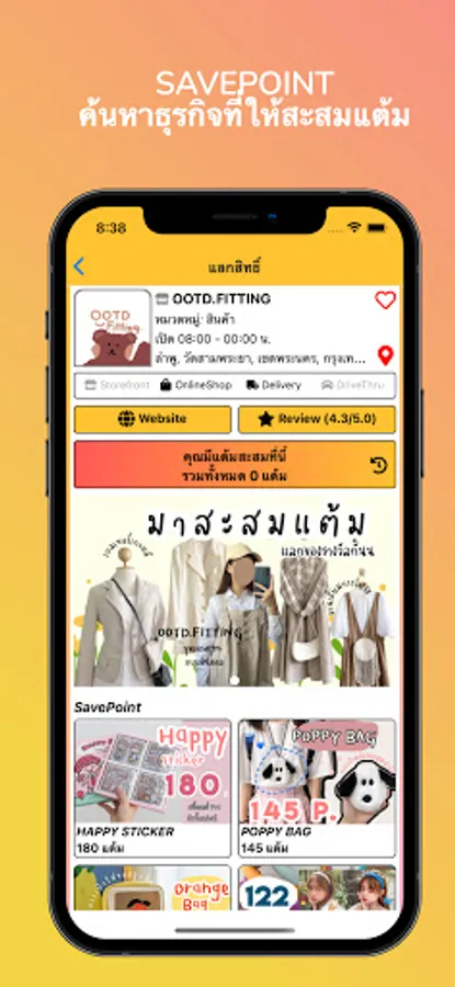 Can't remember where to collect points? The loyalty card is full. Make sure you forget to use SavePoint, a platform that allows you to collect points from participating stores or businesses. can accumulate points and exchange rights that stores or businesses set permissions It's like having a bag to collect points with you. It also helps to record the history of collecting points from stores or businesses. make it convenient No need to carry a heavy bag to collect points from many stores anymore. Just download SavePoint and put it on your device. It's convenient to go anywhere. You can collect points at participating stores or businesses.