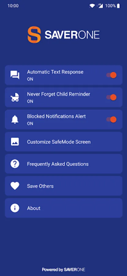 The SaverOne app complements the SaverOne device installed in the vehicle and automatically detects any mobile phone in the driver's vicinity, preventing the use of apps and features which may distract the driver, while allowing the use of essential functions such as phone calls and navigation. SaverOne protects you and all the passengers, ensuring a safe and distraction-free drive.