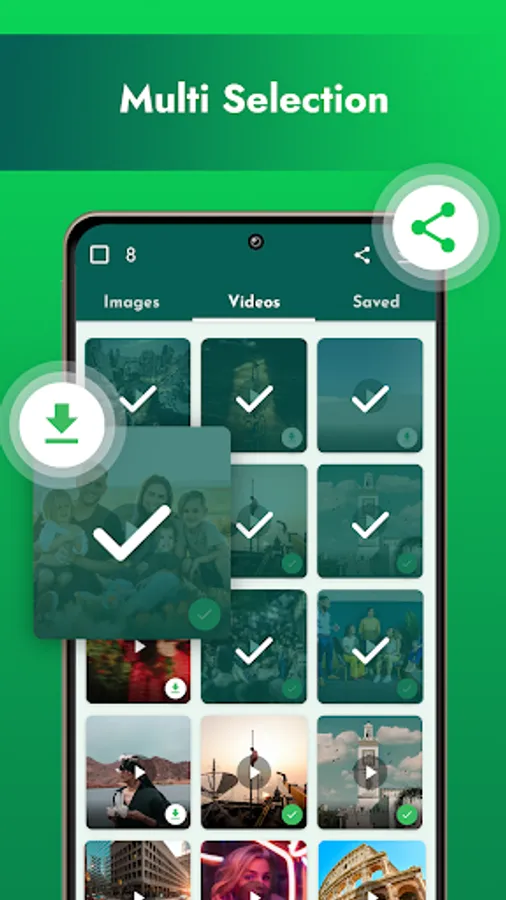 • Status downloader app supports multi-downloads and delete.