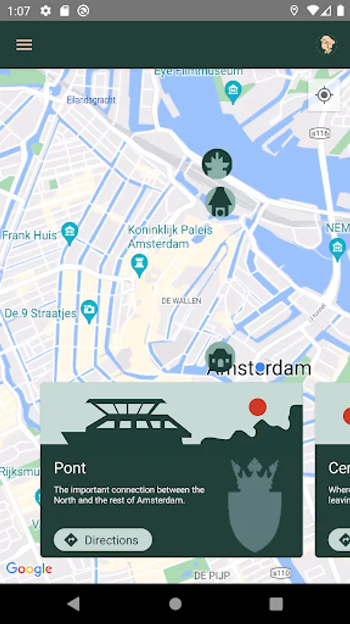 The app displays a map with various locations where you can solve puzzles. Finding the places is not difficult, but can you also find out what is hidden at those places?