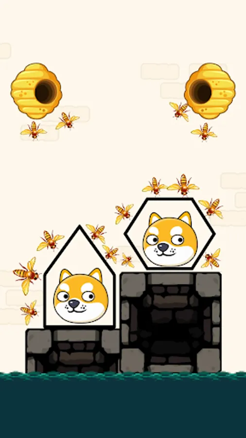 Save The Dog is a casual puzzle game. You draw lines with your fingers to create walls that protect the dog from attacks by bees in the hive. You need to protect the doggy with the painted wall for 10 seconds during the attack of the bees, hold on and you will win the game. Use your brain to save the cheems dogesh.