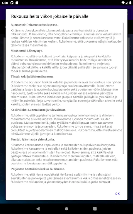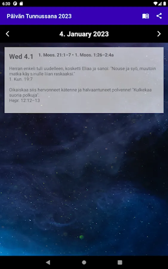 The Suomennos version is based on the 1992 Church Bible. The motto of the day is delivered in Finnish by Karjalan