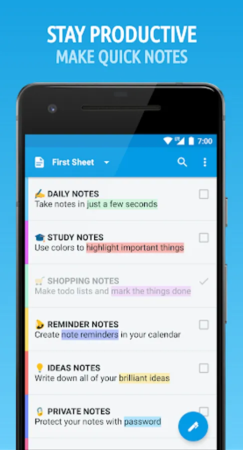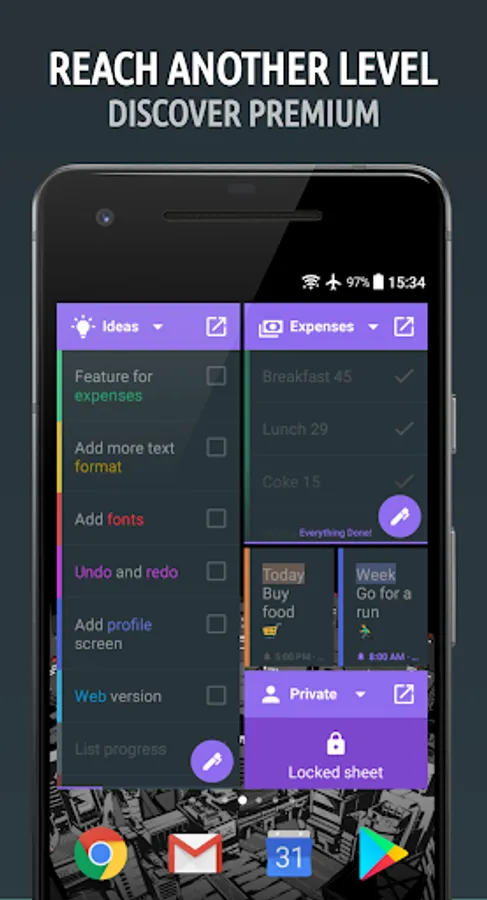 Organize your life without having to download thousand of apps. Everything you need to do, remember, save or share, keep it organized in one place. Here are some examples of how you can take notes and make lists in different aspects of your life: