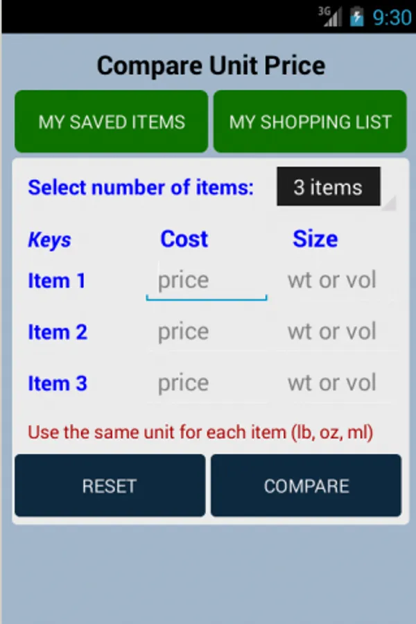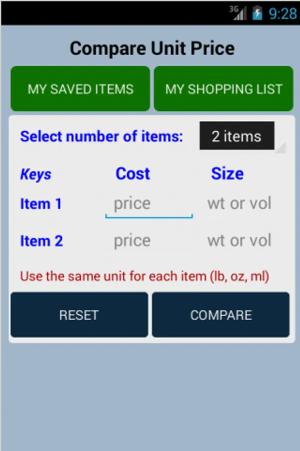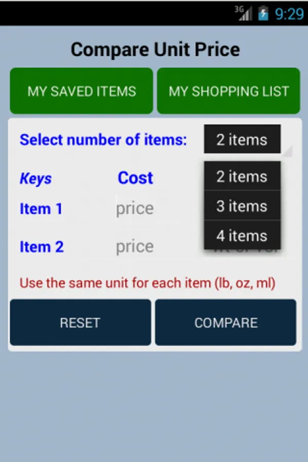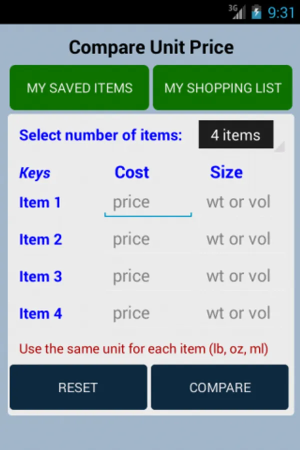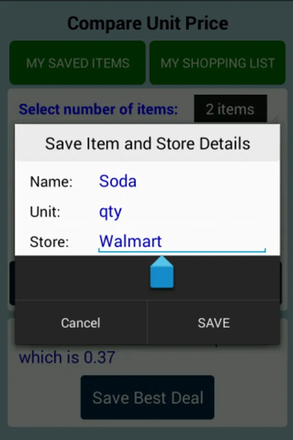 This app will help you calculate price per unit for every item. You can also calculate price per 1 item if the items are in bulk. For example, you can calculate price for one toilet paper roll in a 6, 12, 18, 24 or any other quantity in one package. Doing so will help you know which bundle offer the best price for your money so that you can save on your daily purchases.