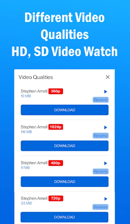 - Different qualities(1024p HD, 720p HD, 480p, 360p, 240p) video download supported