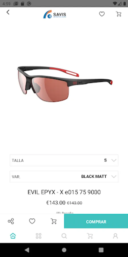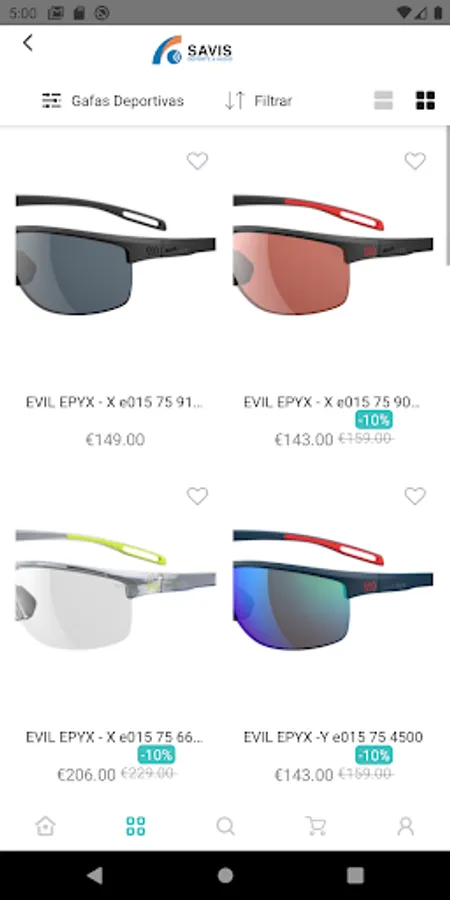 In Óptica Savis you will find more than 2,000 references of sports glasses, prescription sports glasses, sunglasses and eyeglasses, contact lenses and always at the best price. Evil Eye, Rudy Project, Bollè, Ver Sport, Cressi Sub, Lacoste, Liu Jo Milano and many more