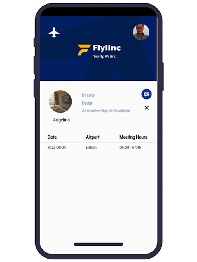 Flylinc links you with other business travelers and linkedin members at any airport of the world. Just type your scheduled date of flight and flight number and Flylinc tells you where, schedules your meetings, optimizing your waiting time. Select with whom and start a chat.