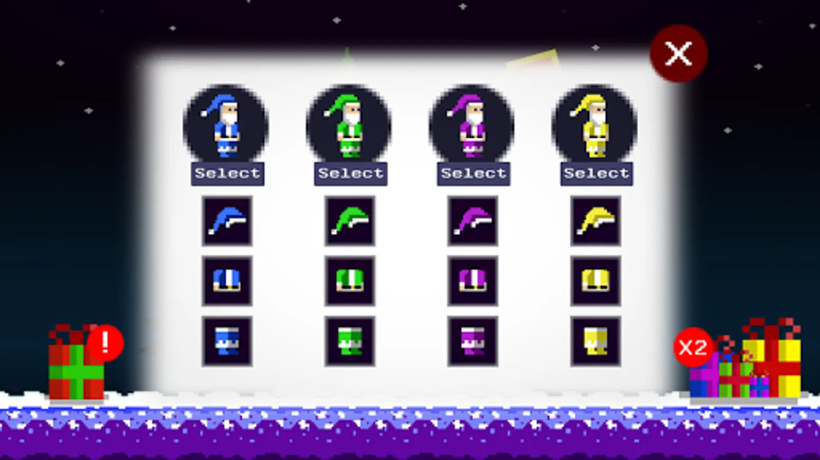 In the Game you can play the normal mode where you have to reach wave 10 in order to get the presents you managed to defend. When opening presents you can unlock parts of the coloured suits of santa.