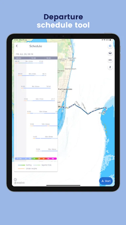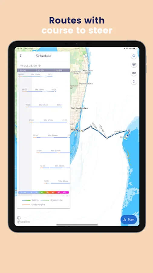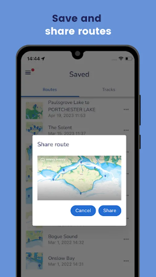 Plot a sailing route in seconds with an automatic course to steer. Drop a pin to indicate your start and finish points and savvy navvy will quickly plot a route to sail taking into account wind, chart and tidal data.