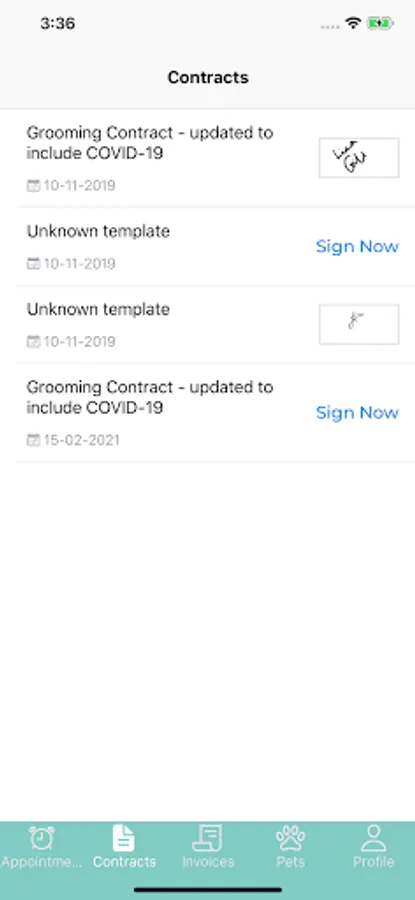 Keep in touch with all your favourite service providers, from spas to pet groomers. The easy to use way to manage your diary. See all your future/past booked appointments, add them to your calendar, get alerts to your phone so you never forget an appointment. You can also check your invoices as well as contracts. A very easy way to sign your contracts and update your profile. Overall, you can keep track of your appointments, invoices, contracts and profile within a single application.