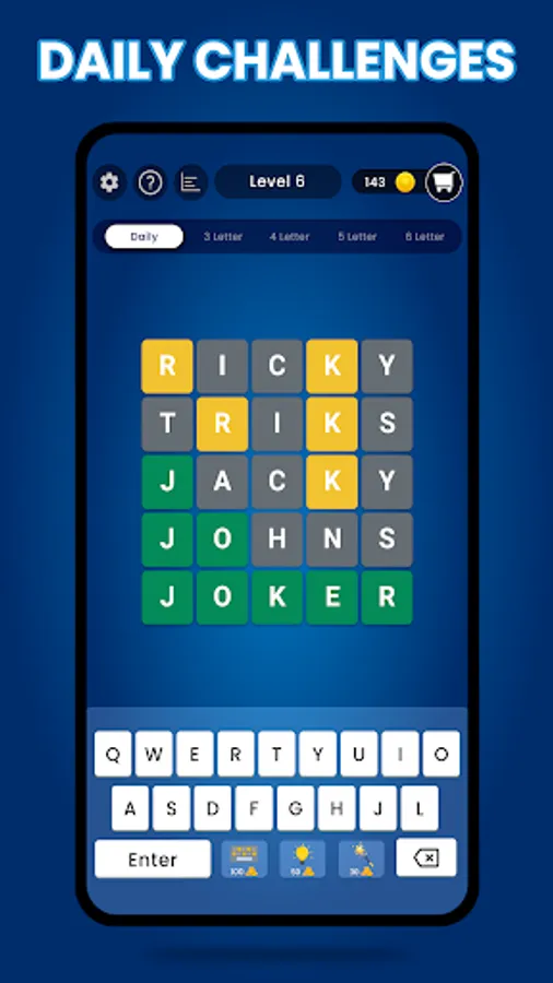 π Select either daily , 3 letters, 4 letter, 5 letter or 6 letter