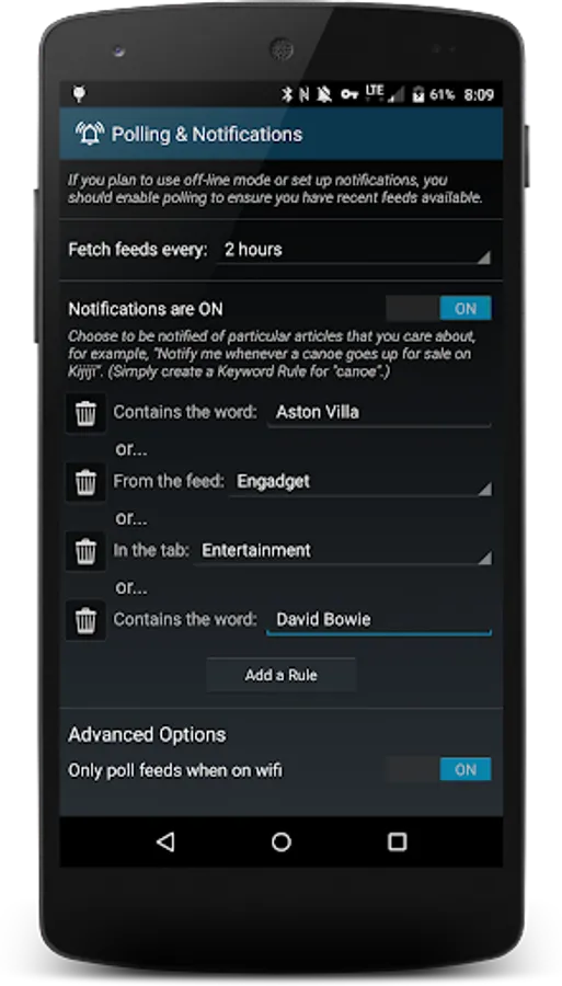 RSS Savvy can monitor your feeds and notify you when articles come up that you care about, whether it’s mentions of your favorite sports team, your home town, or even something you want to buy on Kijiji.