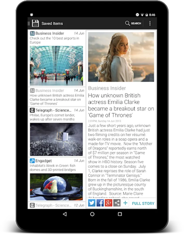 - Easily share your favorite articles on Facebook, Twitter, Email, and others.