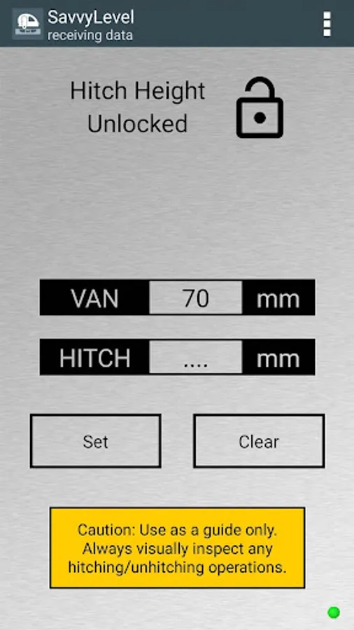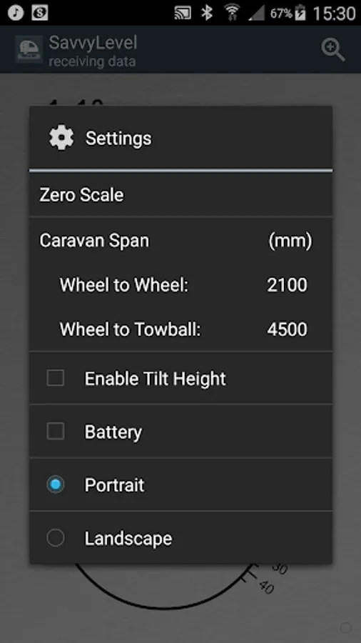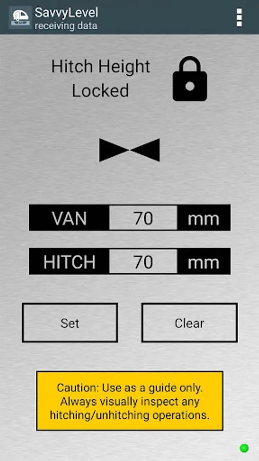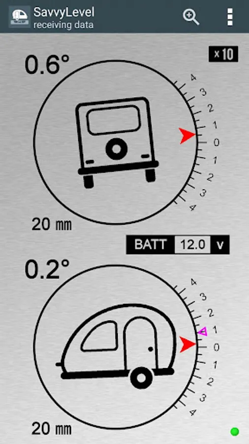 This application communicates to a tiny Bluetooth device mounted inside your caravan. The device is available for purchase at www.savvylevel.com