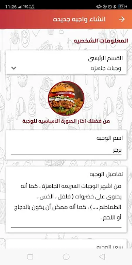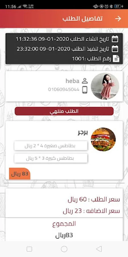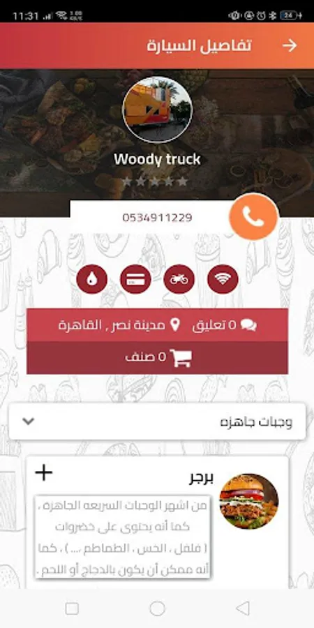The application also allows the possibility of the owner of the car adding his own car and the different meals and additions to that meal, as well as the possibility for the customer to request the meal and determine the date of his arrival in the car, as well as the possibility that the meal be requested for his personal address or any other address determined through the map.
