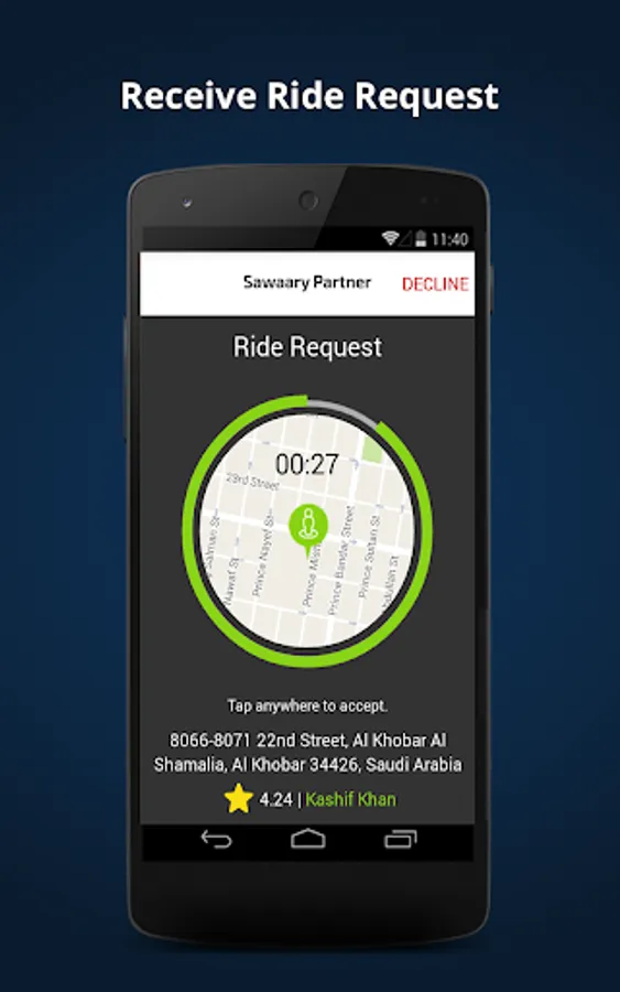 By Joining Sawaary you will become our proud family member and our friendly staff will help you on each and every step and provide you special instructions to increase your earning potential and guide you how to successfully run your business with Sawaary Partner app. Each and every trip of your is fully tracked by our Live Geo tracker and provides you a sense of safety and security.