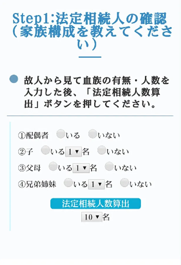 By entering the family structure and the amount of property, you can perform a rough simulation of the amount of inheritance tax.