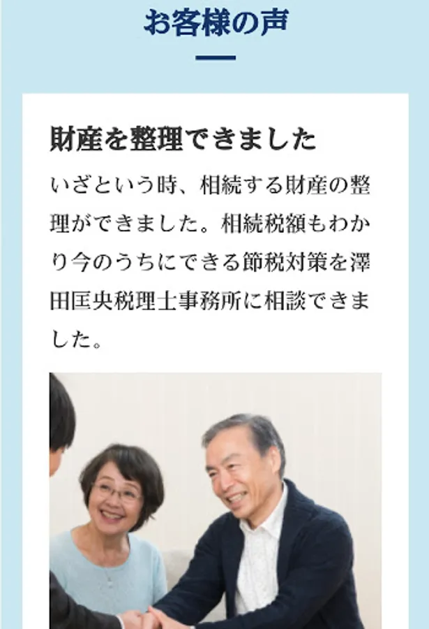 If you have any doubts, worries, or procedures regarding inheritance, please contact "Masao Sawada Tax Accountant Office", which is strong in inheritance.