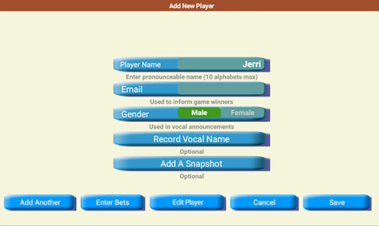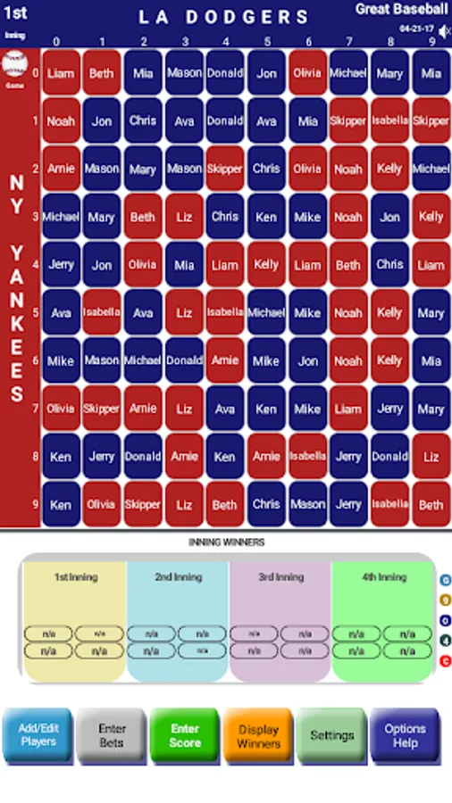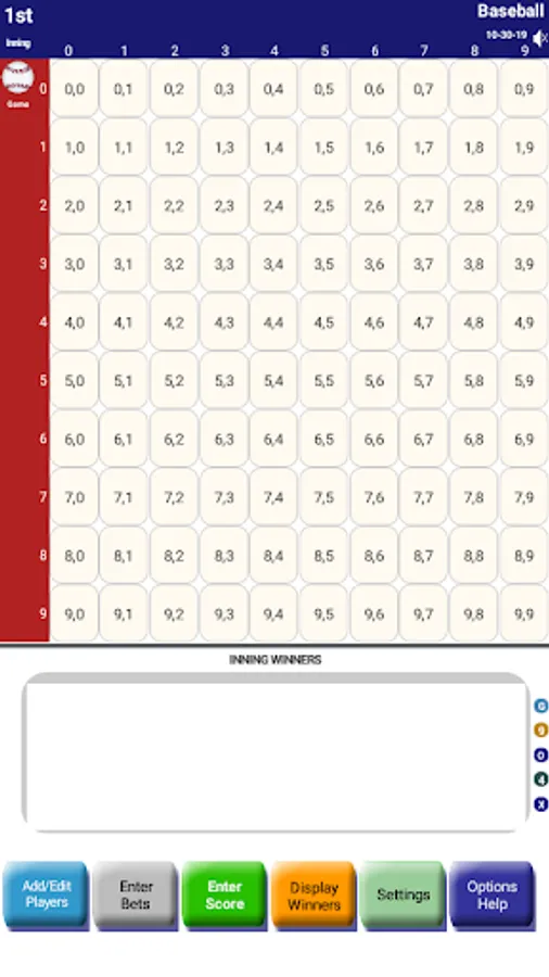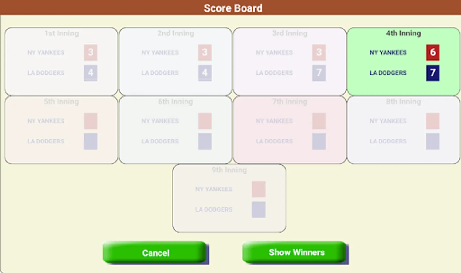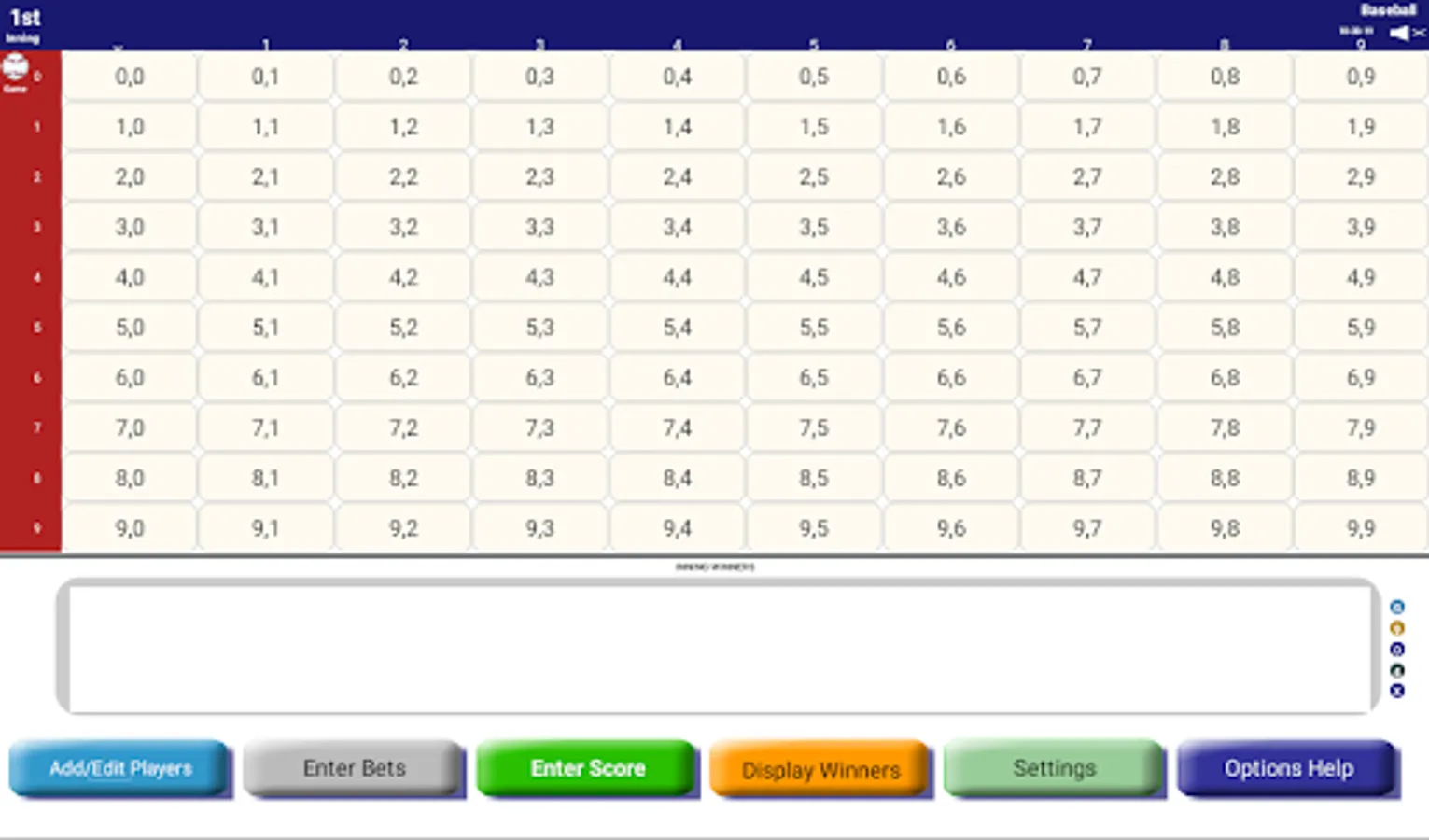 • Bets can be entered by the host directly or submitted remotely by players by using the Baseball GameBet app
