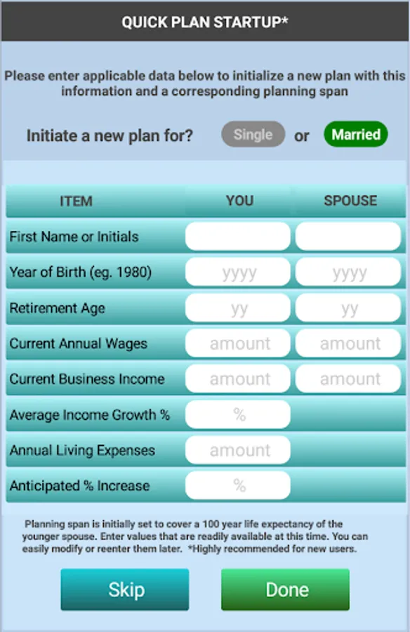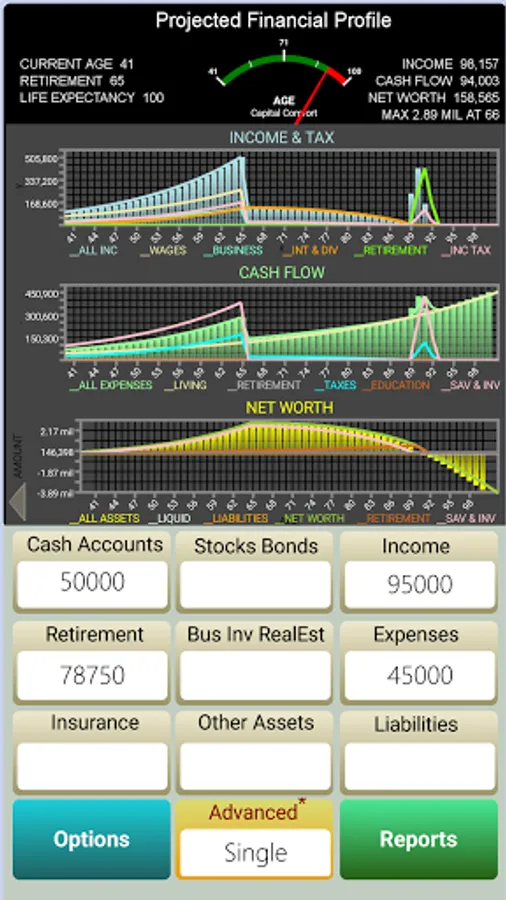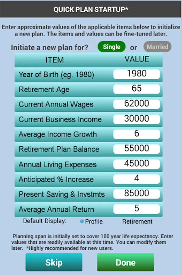 This app is for use by individuals for personal financial planning. It provides you with a powerful planning tool for answers to questions like-