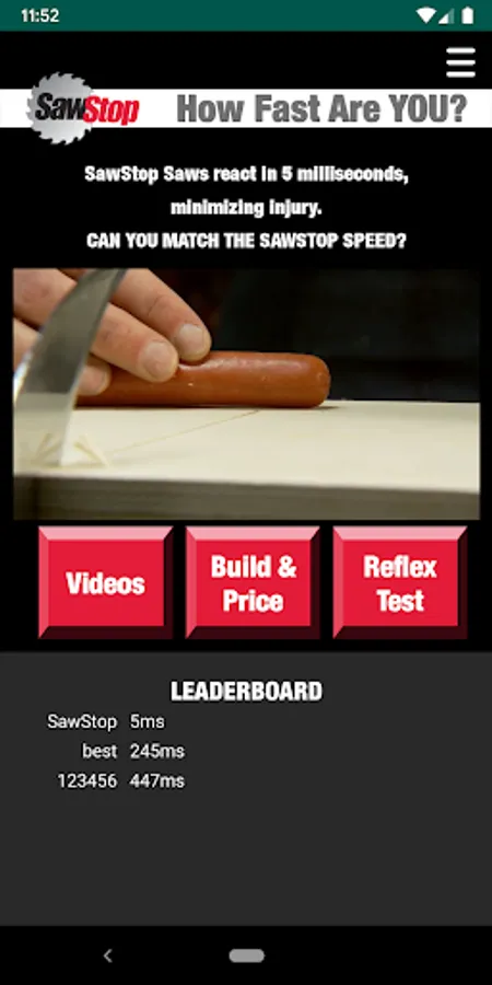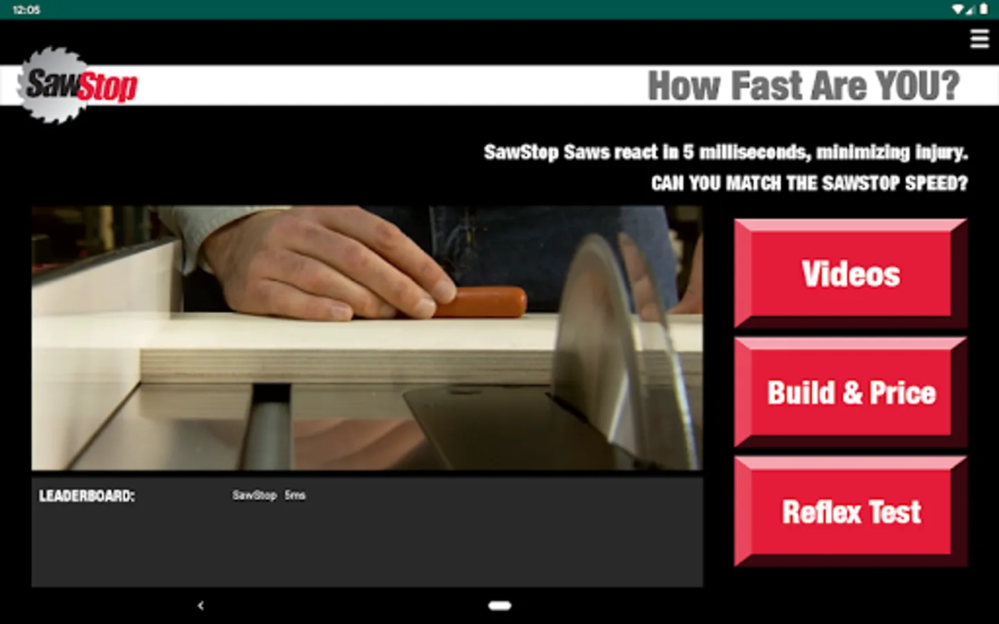 The maker of the World’s Safest Table Saw (and North America’s #1 table saw) is throwing down a challenge. Their patented safety system stops a spinning blade on contact with skin in less than 5 milliseconds. Can you beat their time? Accept the challenge today!