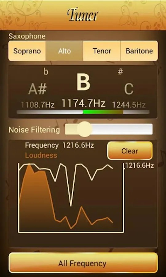 Ever face with the problem of playing together with others instrument or music background and found yourself out of tune ? Saxophone-all-in-one's built in Tuner will help you tune it right this time, features like noise filtering and dynamic frequency chart show you how close you are to the pitch, and now you will stay in tune.