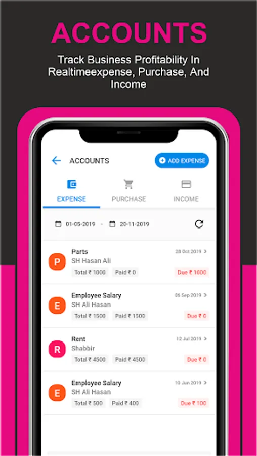 5. Reports & records: Generate the range of garage reports to check profitability at a micro-level such as income, expense, point of sale, and more...