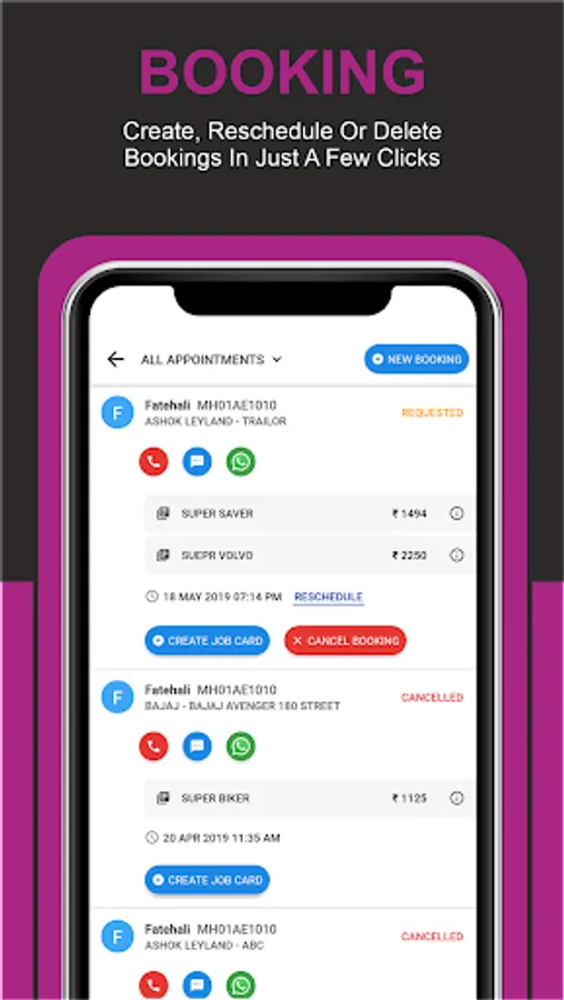 8. Flexibility to create a job card for Car and Bike.