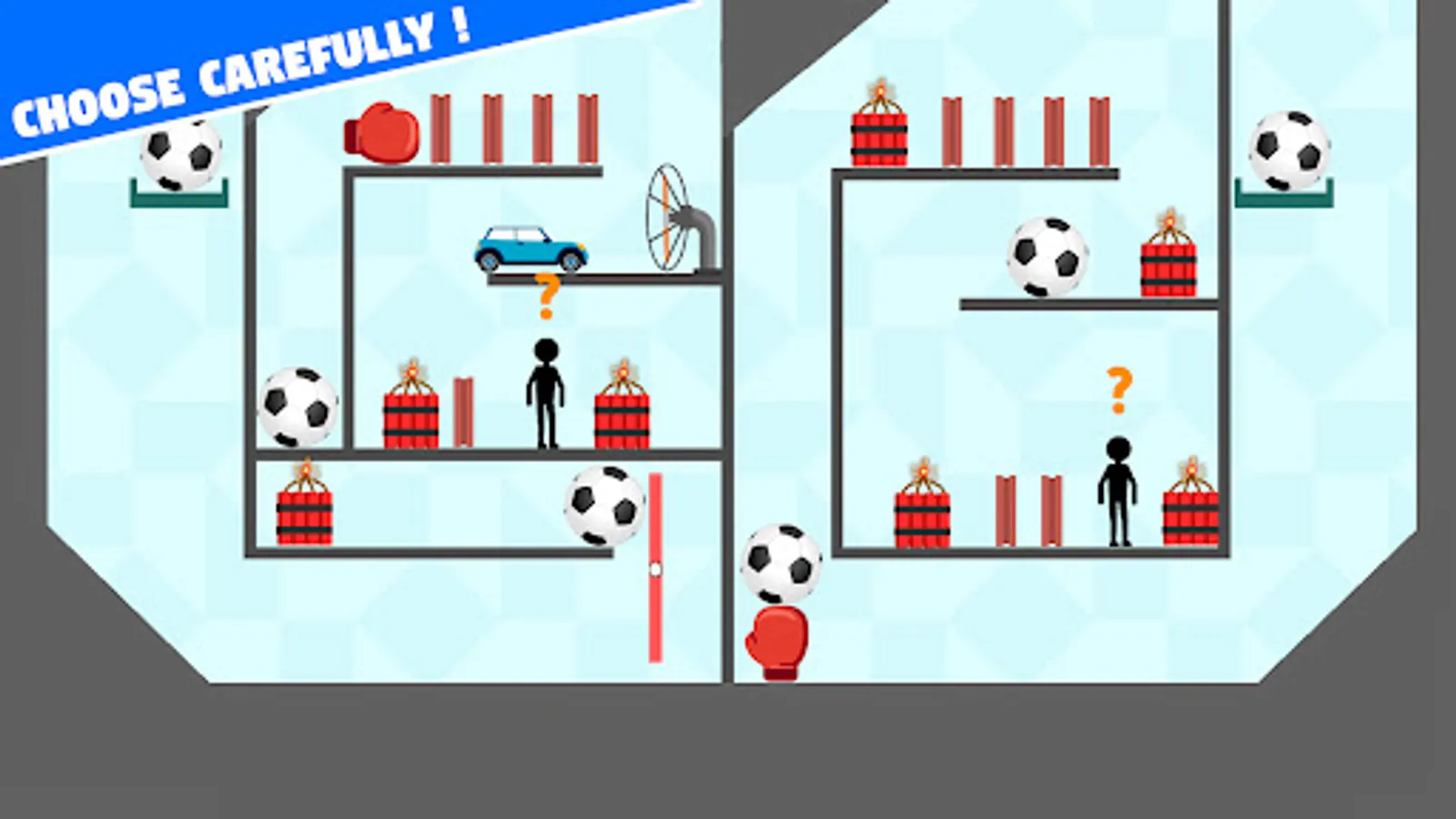 Follow the progress, tap the unlucky stickman, and press the start button to see the results.