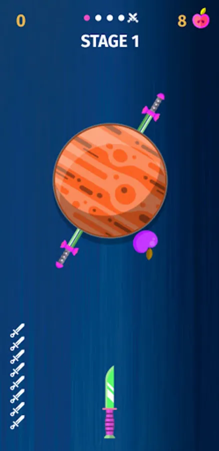 Knife Thrower is a fun game of reflexes and skills in which you have to show your knife throwing skills! When challenges, you have to throw all your knives into a rotating board and unlock special new knives. You can't hit any other knives just throw the knife on the circle and shoot the apple.