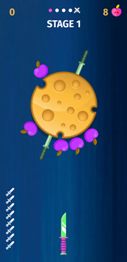 1: Throw the knives in the direction of the circle and shoot only the apples