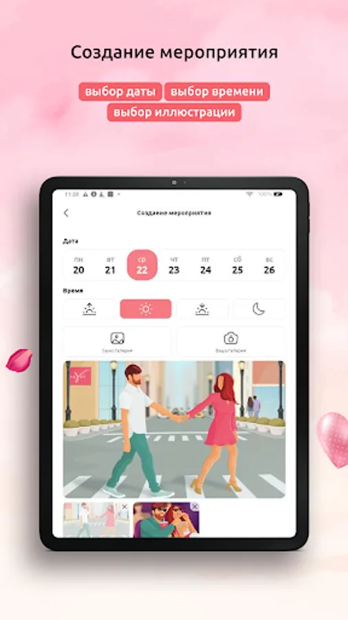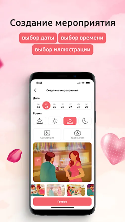 PLANNING. With the help of images that carry actions, locations, and emotions, non-verbal transmission and coordination of desires is achieved. This will allow you to organize joint events in a difficult emotional situation. Offer your partner a choice of various activities, including those that you were embarrassed to discuss openly. Plan your events, prepare for them, and have fun.