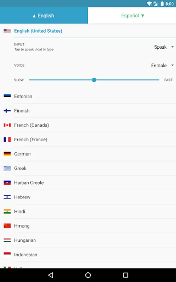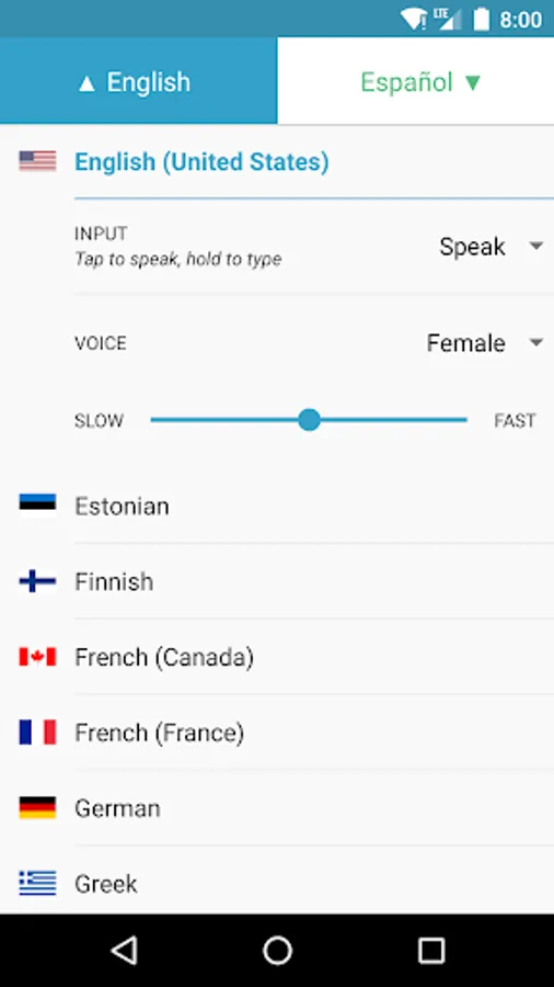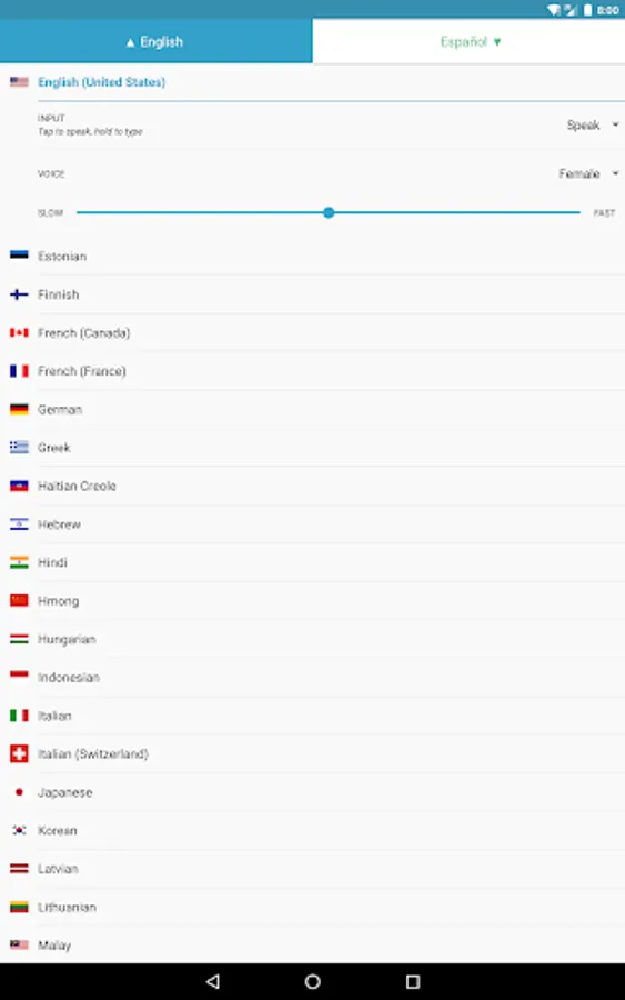Quickly change languages, choose male or female voices (where available), and speed up or slow down the rate of speech
