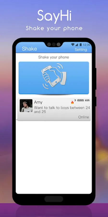 A free and convenient chat plugin for SayHi! You can find a person nearby conveniently by just shaking your phone.So no longer wait, shake your device and shine your life!